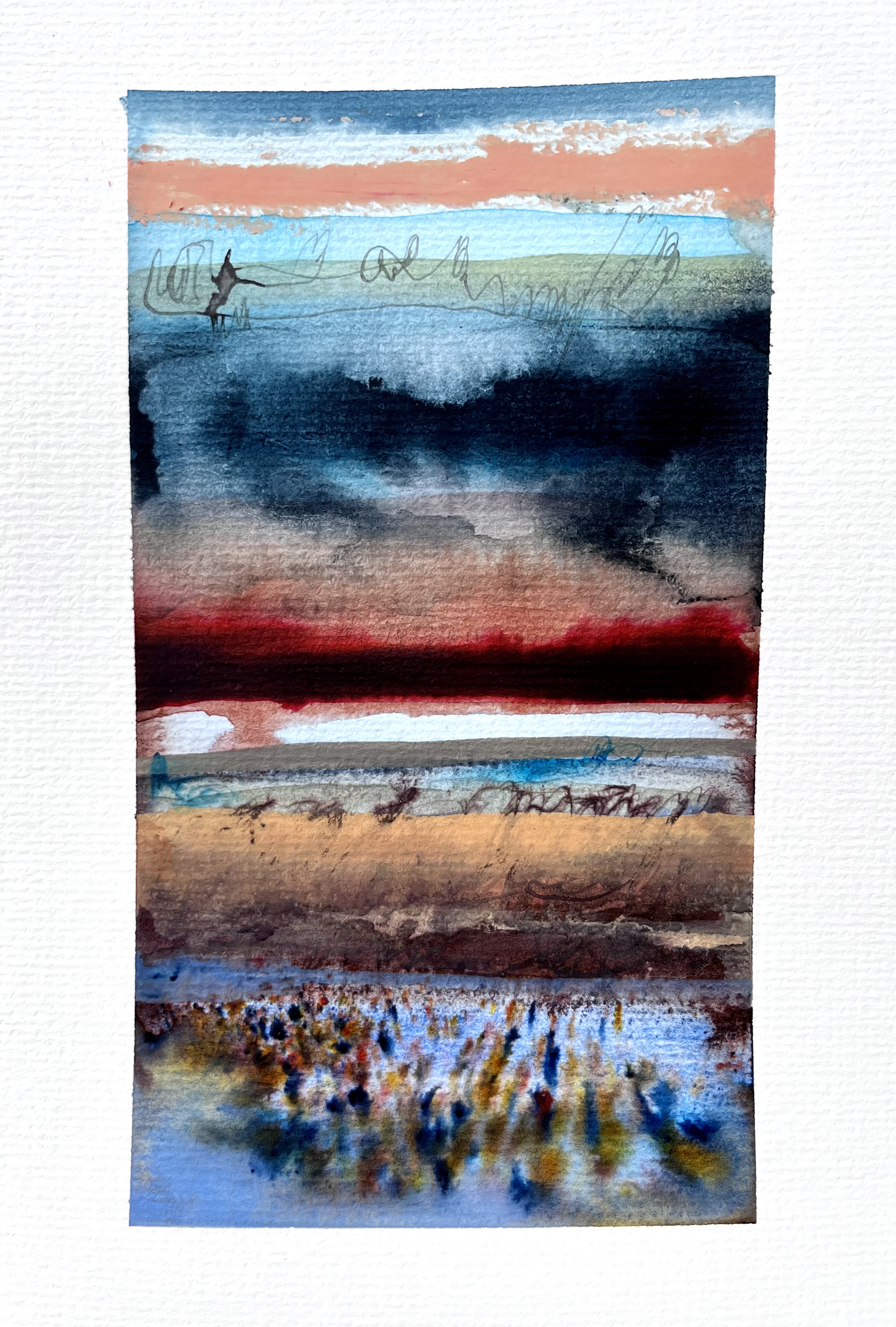 Abstract works incorporating watercolor, handmade inks, oil paint & pastel.
